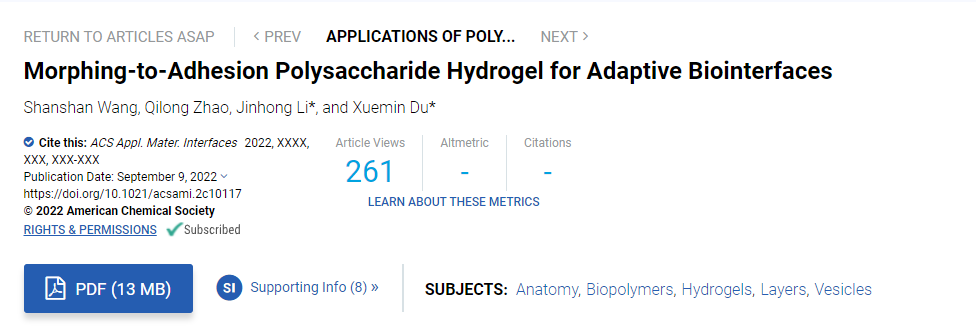 Appl Mater Interfaces | 基于可程控卷曲粘合天然多糖水凝胶的生物适配界面