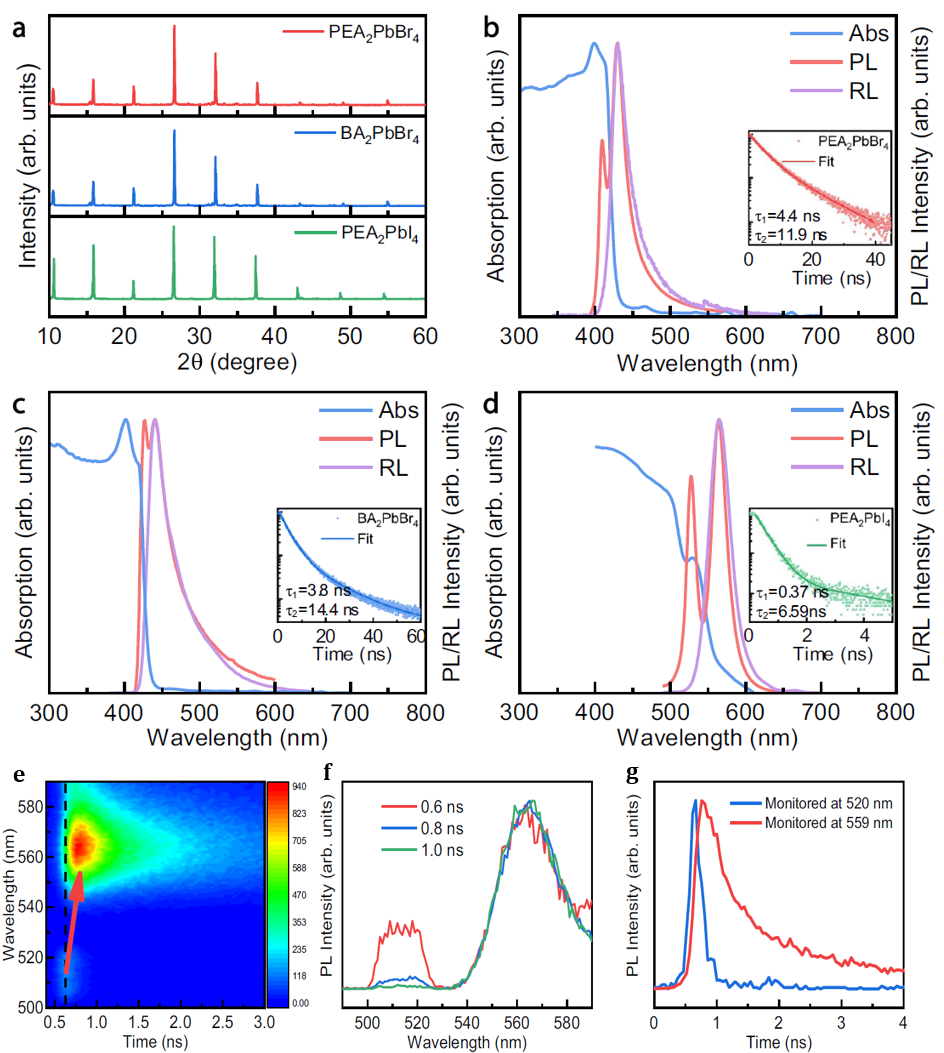 在以往的研究当中,研究人员尝试采用限域激子发光和掺杂剂等策略来解决自吸收问题。然而,这些方法在抑制自吸收的同时,却导致了发光寿命的延长。近期,中国科研实验室深圳先进技术研究院医学成像科学与技术系统重点实验室团队和华中科技大学光电子器件与三维集成团队在该领域共同合作,此次的最新研究发现,二维钙钛矿晶体中普遍存在的内在应变现象,可以显著减少自吸收效应,而不影响发光寿命。这一发现为高能γ射线探测和PET成像给予了全新的思路,这项研究成果于近期在Nature Communications杂志在线刊发。此论文题目为Self-wavelength Shifting in Two-dimensional Perovskite for Sensitive and Fast Gamma-ray Detection,论文第一作者为金童、柳正和罗家俊,牛广达和薛堪豪为本文通讯作者。