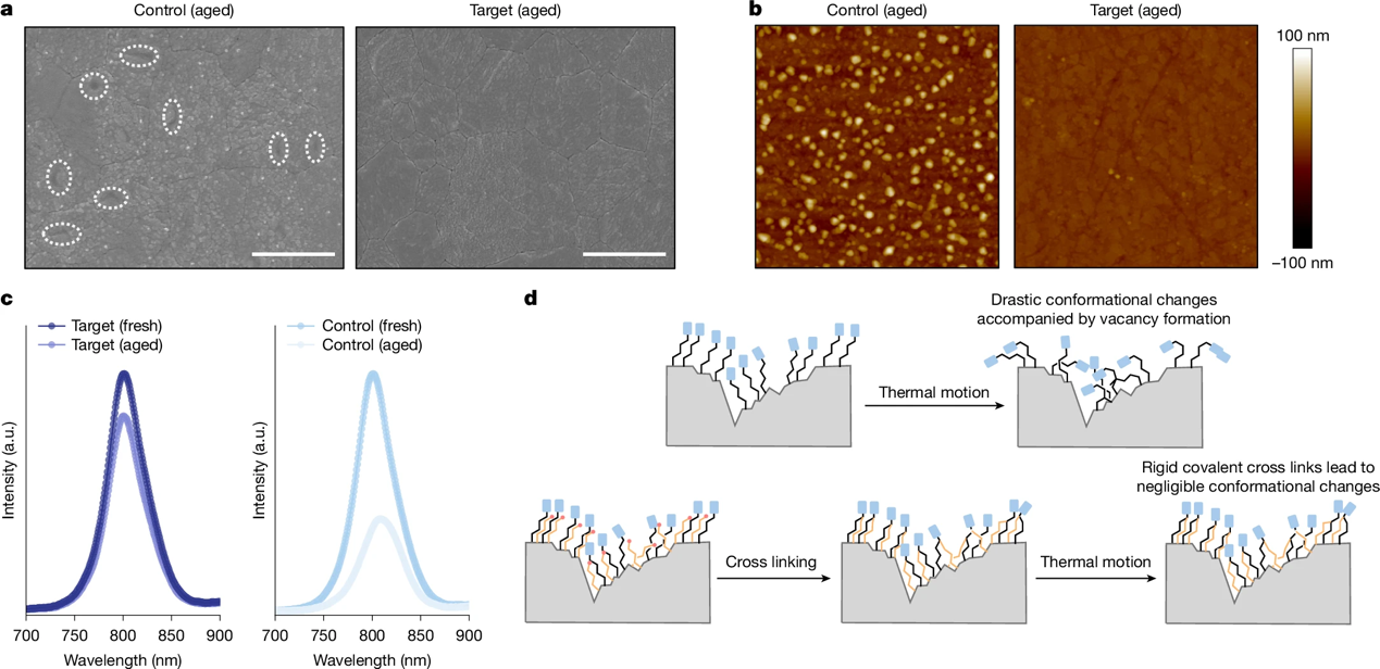 合作团队开发出了一种普适性的SAM分子原位交联构象强化策略,解决了SAM在高效率钙钛矿基光伏技术中的稳定性难题,对促进反式钙钛矿光伏技术和下一代钙钛矿基叠层光伏技术的商业化应用具有重要意义。