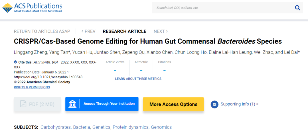 ACS Synthetic Biology | 开发人体肠道拟杆菌的基因组编辑新工具