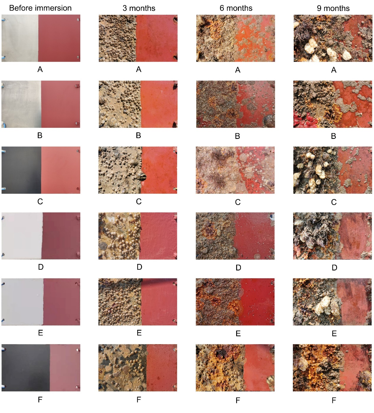 研究中,深圳先进院团队第一时间6种常用的海洋仪器外壳材料(316L不锈钢、TC4钛合金、7075铝合金、聚甲醛、聚氯乙烯、氟龙)制作成挂板,与厦大团队一起将挂板放置在厦门五缘湾海域水下,以试验厦大团队研发的CPT防污涂料在上述材料表面的防污效能。海试实验结果表明,CPT防污涂料在海区3个月内在上述种材质上均显示出优异的防生物附着效能,未涂覆涂料的对照区域长满了污损生物,但涂覆涂料的区域保持了表面洁净。在海区实测9个月后,涂覆涂料区域的污损生物仍明显少于对照区域,尤其是在塑料材质上的防生物附着效能要优于金属材质