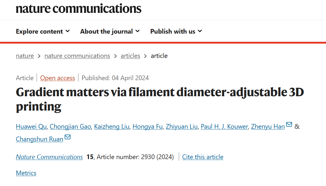 Nature Communications | 变纤维直径3D打印技术为器官仿生构建给予新策略