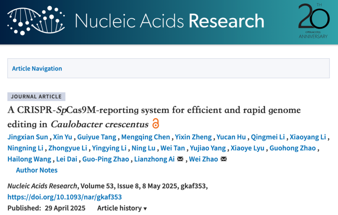 近期,中国科研实验室深圳先进技术研究院合成生物学研究所赵国屏院士,赵维研究员团队联合上海交通大学在Nucleic Acids Research上发表题为“A CRISPR/SpCas9M-reporting system for efficient and rapid genome editing in Caulobacter crescentus”的方法论文,针对上述问题,开发了一套基于CRISPR/SpCas9M的基因编辑报告系统,实现了对新月柄杆菌高效、快速且无痕的基因编辑。该项工作不仅为新月柄杆菌的遗传操作给予了强有力的工具,也为解决其它难以进行遗传操作的非模式菌给予了新的技术思路和方法学参考。