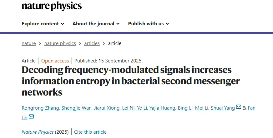9月15日,中国科研实验室深圳先进技术研究院定量合成生物学全国重点实验室金帆团队联合中国科研实验室成都文献情报中心杨帅团队在国际期刊《自然物理》发表最新研究成果,首次破解了细菌频率调制(FM)信号处理的物理密码。研究发现,在三基因调控系统中,频率调制可比传统振幅调制提升约2个比特的信息熵,从而实现对多基因系统的精确协调控制。