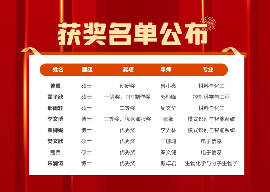 来自材料所的硕士生曾晨因其出色的表现荣获学术报告创新奖,该奖项原则上面向在读博士生,拟奖励不超过2名博士研究生。